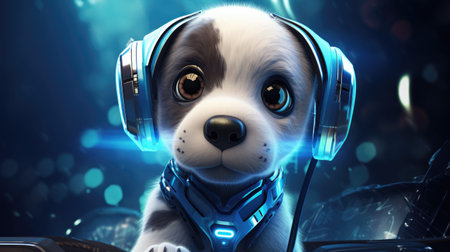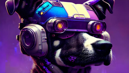 Futuristic dog with 3 D glasses. Generative AI.