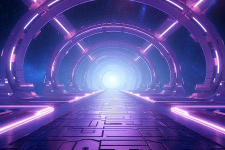 Futuristic tunnel with glowing lights.