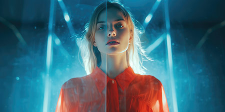 AI Generated. Futuristic Fashion with Colorful Light Accents