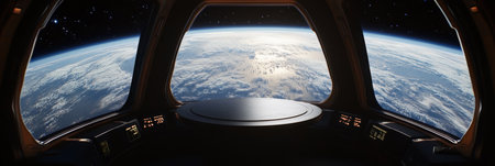 inside the space station, with view of earth below, created with generative ai
