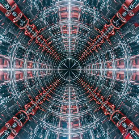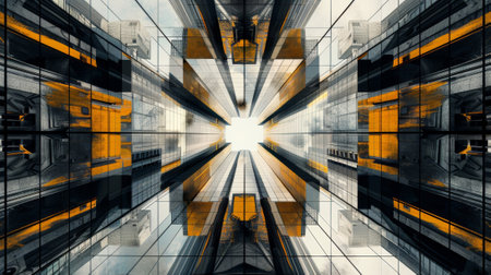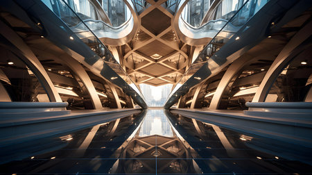 a mesmerizing display of symmetrical industrial architecture or infrastructure, highlighting the inherent beauty of its geometric patterns. the precision and balance found in these structures