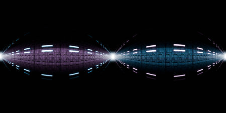 Futuristic glowing corridor with symmetrical design 360 vr panorama