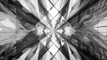This captivating black and white line art photograph showcases a mesmerizing interplay of geometric shapes and minimalist design elements. The monochrome stripes, rendered with meticulous detail, create a dynamic visual narrative. The abstract composition invites the viewer to explore the interplay of lines, angles, and negative space. Intricate patterns emerge from the interplay of simple geometric forms, resembling a modern architectural blueprint or a complex network of interconnected pathways. The minimalist aesthetic emphasizes form over embellishment, allowing the viewer to focus on the beauty of the shapes and their harmonious arrangement. The absence of color underscores the visual impact of the strong lines and bold contrasts, creating a sophisticated and timeless aesthetic. The image's clean, crisp lines are perfect for various applications, from modern wall art to graphic design elements. The geometric shapes and minimalist design principles are ideal for posters, website backgrounds, or social media graphics. Its versatility makes it a captivating piece for anyone seeking a visually striking and sophisticated design element. The image's high level of detail allows for close examination of the intricate lines and shapes, highlighting the precision and artistry in the creation of this piece. Through its abstract nature, the artwork evokes a sense of elegance and modern sophistication.
