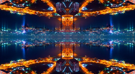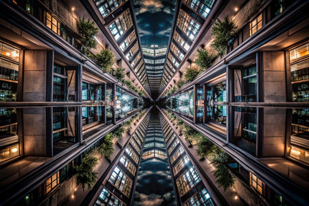 Urban Apartment Complex, Kaleidoscope, Night Reflection, Sky