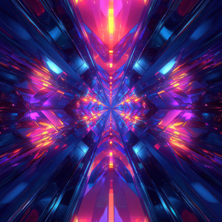 A 3D rendering of futuristic kaleidoscopic patterns background
