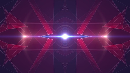 abstract blue and red glow technology future kaleidoscope background, shades of black, square and line