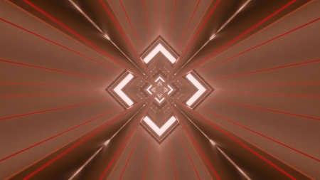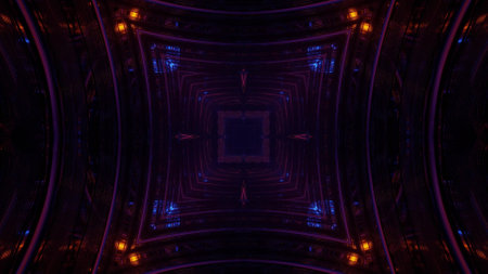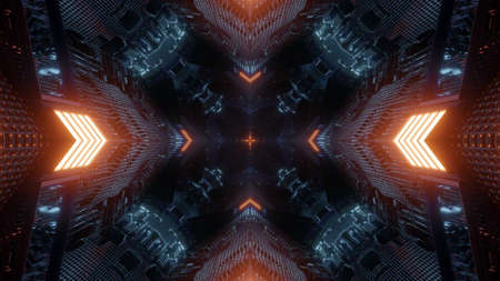 4K UHD 3D illustration of dark cyberspace with symmetric neon rays