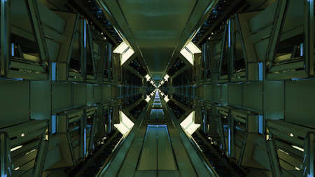 3d illustration of UHD sci fi square shaped tunnel