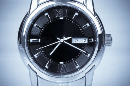 Picture close-up of wrist watches with blue dial