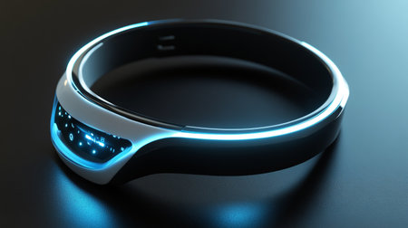 Futuristic smart watch with a blue led on a black background