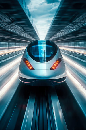 Embark on a vibrant highspeed journey through a futuristic tunnel, illuminated by neon lights and dynamic motion blur effects. Ideal for themes such as technology, scifi, and innovation