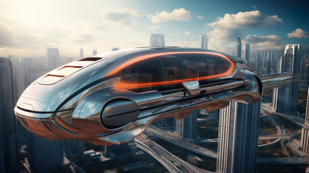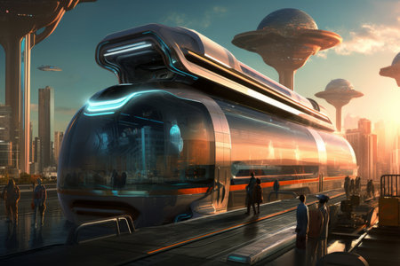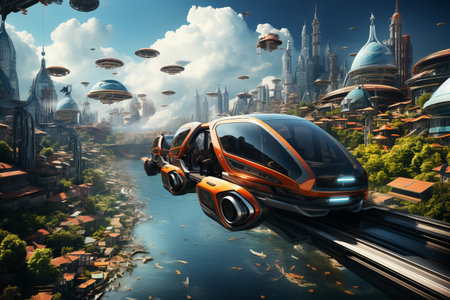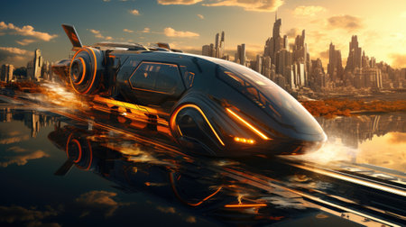 Conceptual of transportation with clean energy in the future Created with Generative AI technology.