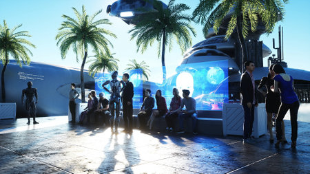 3D illustration of virtual travel with people.