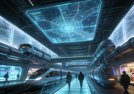 Futuristic transportation hub with multiple modes