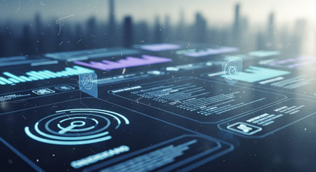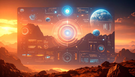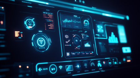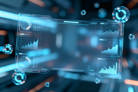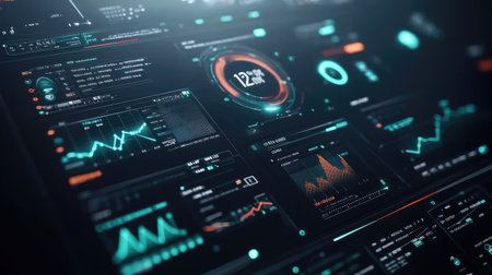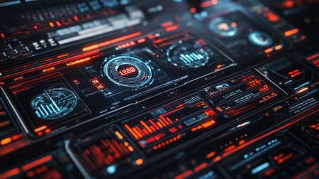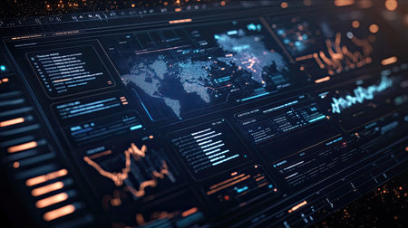 Futuristic dashboard displaying complex data and information in digital environment