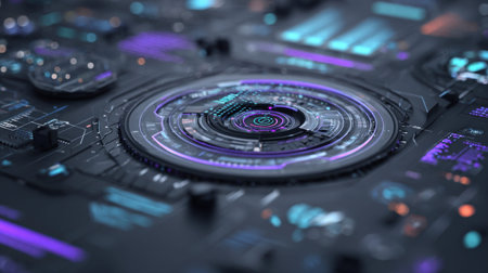 Detailed shot of a futuristic graphic with tech-inspired elements and a cool color palette, perfect for digital interfaces and technology-related content