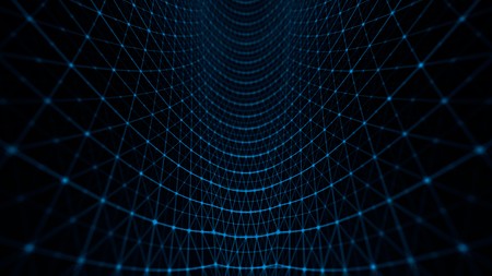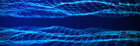 Wave of interlacing points and lines. Abstract background. Technological style for science, big data.3d rendering.