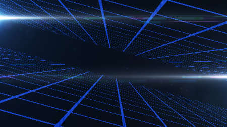 Abstract blue perspective grid. Digital background in retro style. Cyber landscape on dark background. 3d rendering
