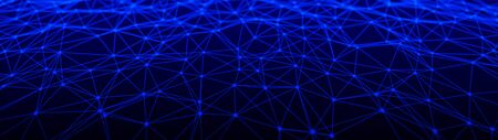 Abstract blue Plexus Glowing waving line dots connect technology futuristic animation panorama background 3d rendering