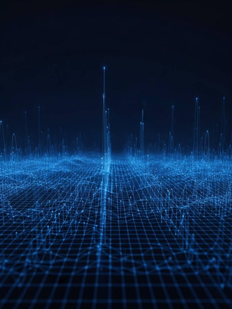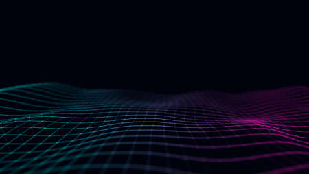 digital technology wave. Dark cyberspace with colorful motion dots and lines. Futuristic digital background. Big data analytics. 3d rendering.