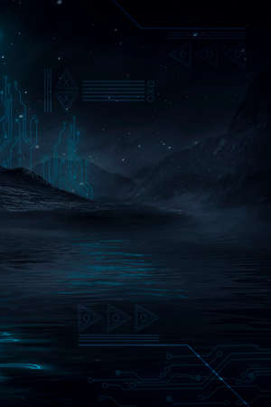 cyberpunk landscape with digital technology elements ,concept of cyberspace and cyberpunk.3d illustration