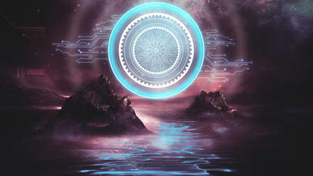 Fantasy 3d sci fi rock landscape portal technology 3d render
