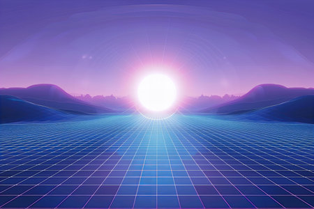 Retro vaporwave background with neon grid and nostalgic 80s style. Great for music visuals, or creative web designs.