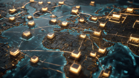 A network of global business hubs represented on a digital map.