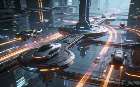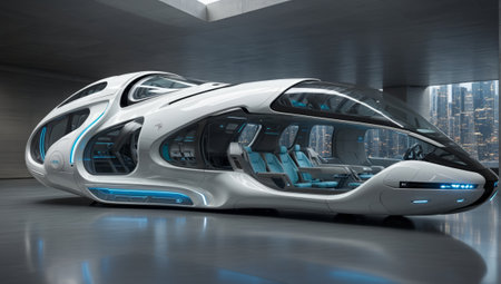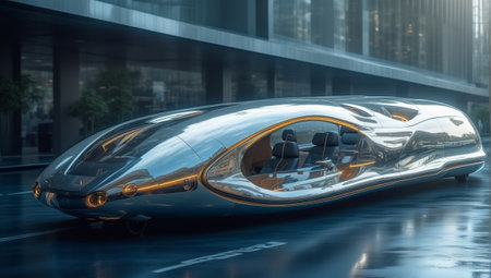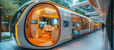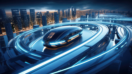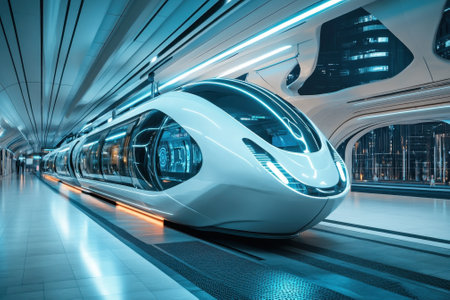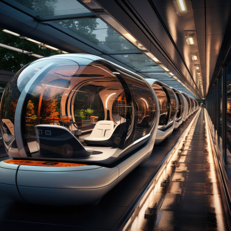 futuristic public transportation system, with sleek vehicles and advanced technology, created with generative ai
