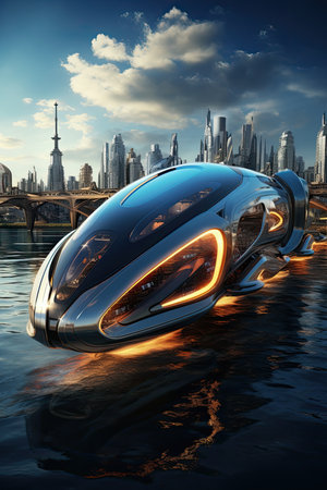 Conceptual of transportation with clean energy in the future Created with Generative AI technology.