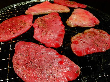 Raw beef slice charcoal on the stove, Japanese style yakiniku.