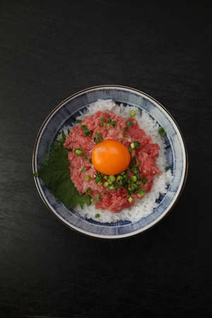 Delicious-looking raw horse meat Yukke-don set lunch set