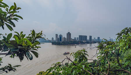 GUANGZHOU, CHINA, 18 NOVEMBER 2019: cityscape of Guangzhou on the Pearl river