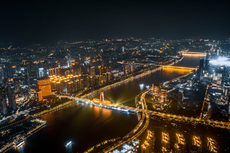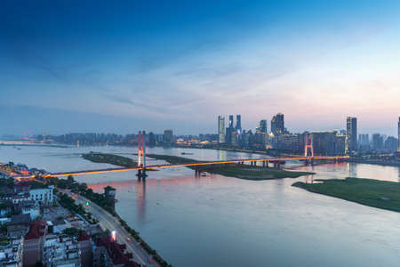 aerial view of the beautiful changsha cityscape and the bridge on xiang river, hunan province, China