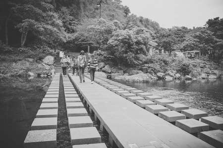 Jeju Island, KOREA - OCTOBER 12: The Famous Chunjeyun waterfall in JeJu Do Island in Korea. This picture could be use in promoting the place - 12 OCTOBER 2014.