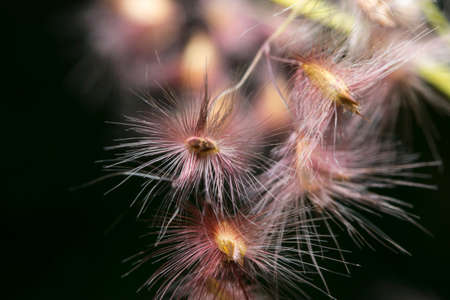 Abstract dandelion macro on a gently pink background. Raindrops inside a dandelion