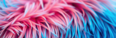 Soft, colorful fur with vibrant pink and blue strands creating a playful look and lively textures
