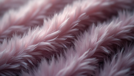 This close-up image showcases a luxurious soft pink faux fur, with its delicate fibers creating a wave-like pattern. The gentle hues and plush texture evoke a sense of warmth and comfort, perfect for cozy home decor or fashion accessories.