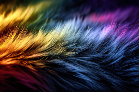 Soft, colorful fur with vibrant pink and blue strands creating a playful look and lively textures