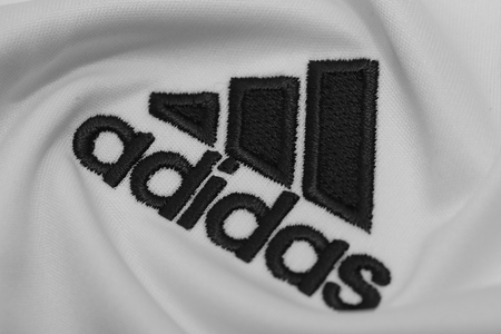 BANGKOK, THAILAND - JULY 15: The Logo of Adidas on Football Jersey on July 15,2017 in Bangkok Thailand.