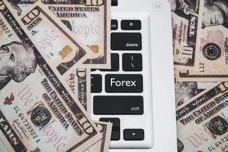 Concept - currency exchange. Depreciation of the dollar. The growth of the dollar, a way out of the global crisis. Sale of shares on the stock exchange.