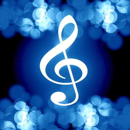 Music background with treble clef and bokeh lights.