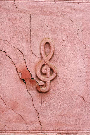 musical symbol on pink plaster wall