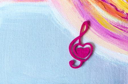 Treble clef with a heart on a beautiful background.Acrylic painting.