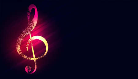 Illuminated G-clef music note and neon tubes on concrete wall. Musical arts or nightlife concept. 3D render illustration