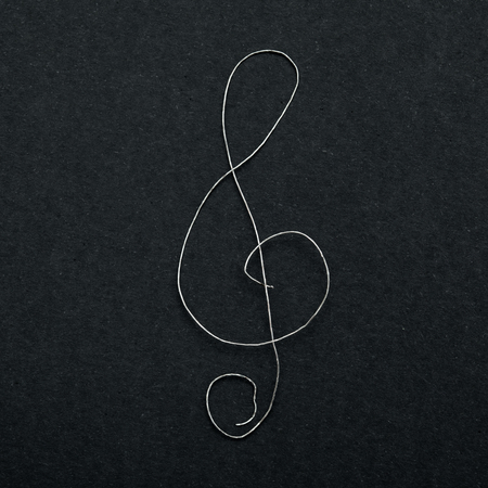 musical sign clef made of broken guitar string on black paper