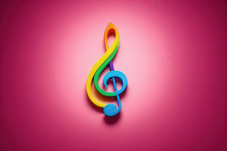 Colorful treble clef on pink background. Music concept.