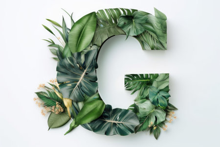 letter g, tropical style, on white background, created with generative ai