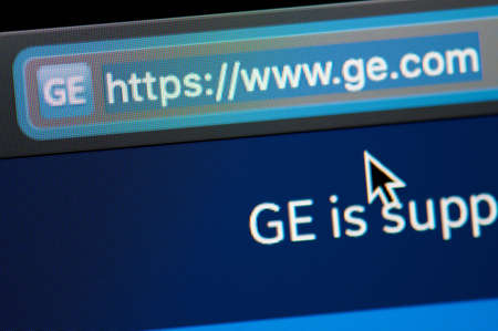 New-York , USA - April 29 , 2020:Ge url link adress website close up view on laptop screen
