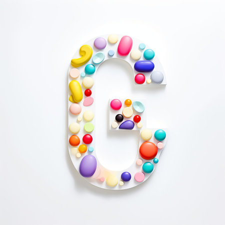 the whimsical letter d, crafted from an assortment of colorful pills, pops against a pristine white background, showcasing the intricate details of each pill's unique shape and vibrant hue, evoking a sense of playfulness and creativity in typography and pharmaceutical-inspired art. ai generated